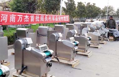 近日,河南萬杰食品機械有限公司排列整齊的食品機械準備裝車,發(fā)往“中國人民抗日戰(zhàn)爭暨世界反法西斯戰(zhàn)爭勝利70周年閱兵”部隊駐地。